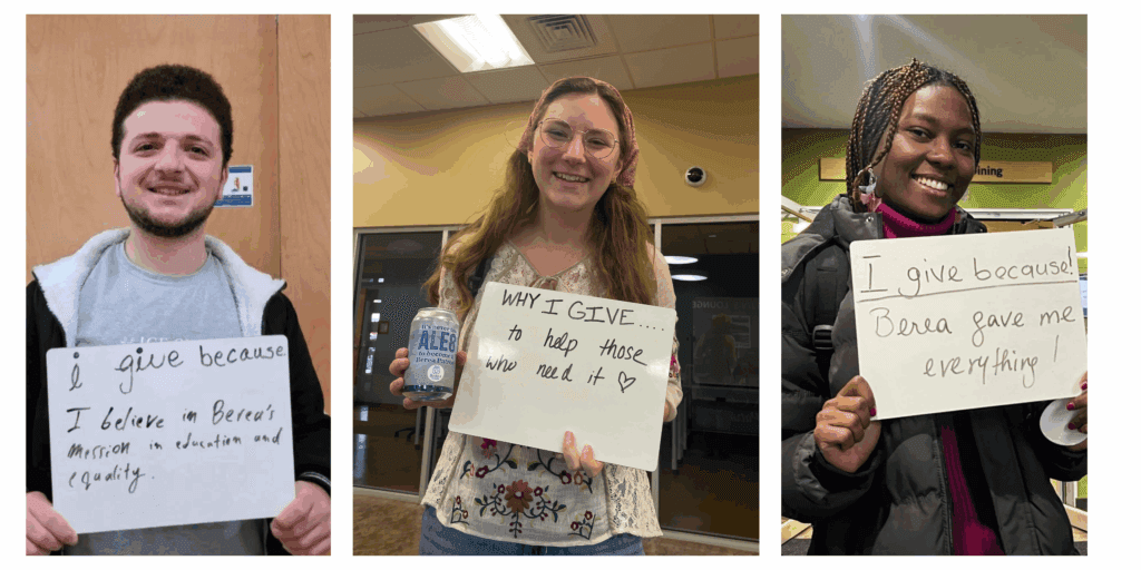 Berea College must raise more than $4.9 million to complete tuition funding each year. That’s about $3,500 per student. Current Berea students are coming together to pay forward the gift of education through their own philanthropy. All donations of any amount between July 1st – June 30th count toward Berea Patron membership.